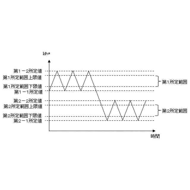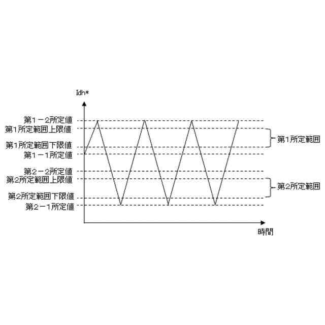 前記d軸高調波電流を前記第1所定範囲の下限値以下である第1-1所定値から前記第1所定範囲の上限値以上である第1-2所定値に変化させた後、再び、前記第1-1所定値に変化させる重畳動作をN回(Nは1以上の整数)繰り返し、