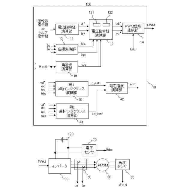 また、特許文献2は、d軸のインダクタンス相当値判断手段と、インダクタンス相当値に基づいて、永久磁石の磁石磁束量の推定値を演算する推定方法を開示している。