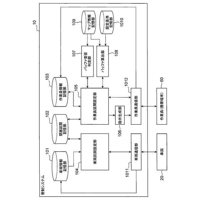 前記作業員区間設定部は、前記バッファ要否判定部の判定結果に応じて前記第二閉塞区間を設定し、