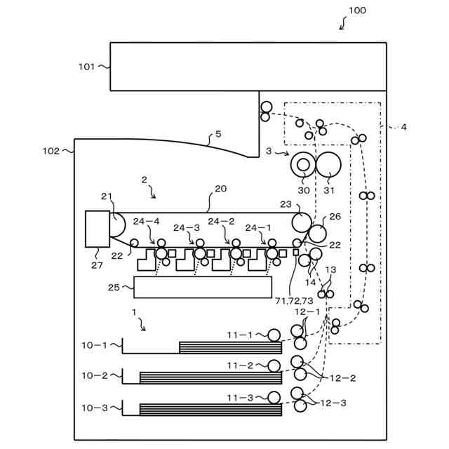 図1は実施形態に係る複合機100の機械的な構成を概略的に表す図である。