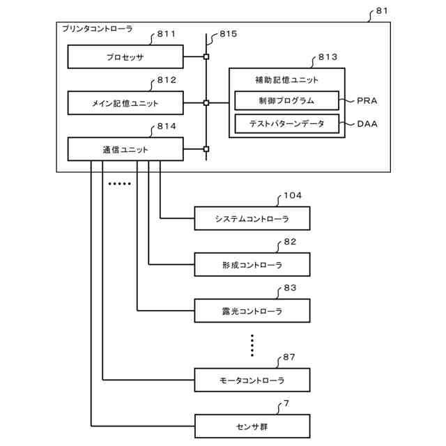 複数の前記形成部によりそれぞれ形成されたテストパターンの形成状況を、前記第1のセンサによる検出結果に基づいて判定する判定部と、