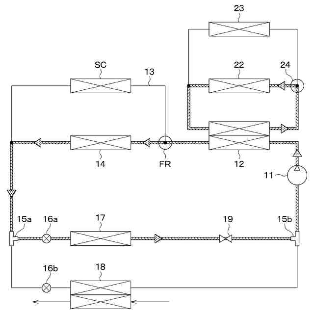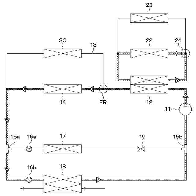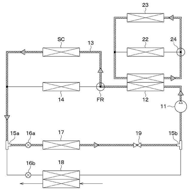 第2加熱部を通過した後の冷媒を減圧させる減圧部(16a、16b)と、