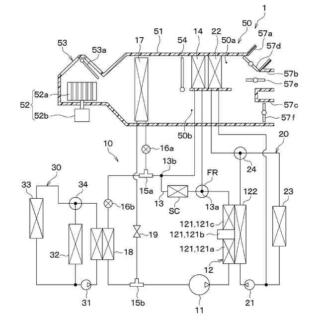 これによれば、第2加熱部による送風空気の加熱が必要な場合には、第1加熱部を通過した後の冷媒が、第2加熱部に流れることになるので、第1加熱部および第2加熱部の双方で送風空気を加熱することができる。加えて、第2加熱部による送風空気の加熱が不要な場合には、第1加熱部を通過した後の冷媒が、第2加熱部を迂回して流れることになるので、第2加熱部に起因する熱害を抑制することができる。
