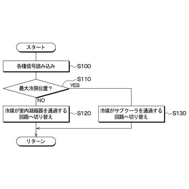 第1実施形態に係る冷凍サイクル装置の空調制御部が冷房モード時に実行する回路制御処理の流れの一例を示すフローチャートである。