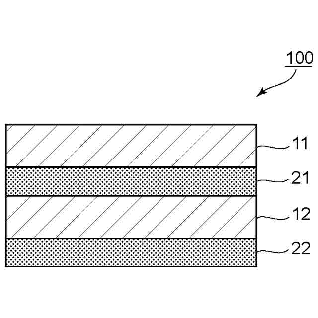 図1は、本発明の1つの実施形態による表面保護フィルムの概略断面図である。図示例の表面保護フィルム100は、第1の基材フィルム11と、第1の粘着剤層21と、第2の基材フィルム12と、第2の粘着剤層22と、を有する。第2の基材フィルム12は、第1の粘着剤層21を介して第1の基材フィルム11に貼り合わせられている。第2の粘着剤層22は、第2の基材フィルム12の第1の粘着剤層21と反対側に設けられ、表面保護フィルム100を被着体(代表的には、光学フィルム)に剥離可能に仮着する構成としている。このように、本発明の実施形態によれば、表面保護フィルムは、2つの基材フィルムと2つの粘着剤層とを有する。このような構成であれば、後述するように、落ち込み量、ならびに、表面保護フィルムと被着体(代表的には、光学フィルム)との間のせん断力を所望の範囲とすることができる。その結果、後述するように第2の粘着剤層の押し込み硬さと段差追従性とを最適化することにより、表面保護フィルムとしての十分な強度を有し、かつ、凹凸表面を有する被着体に仮着した場合であっても、気泡の発生が抑制された表面保護フィルムを実現することができる。