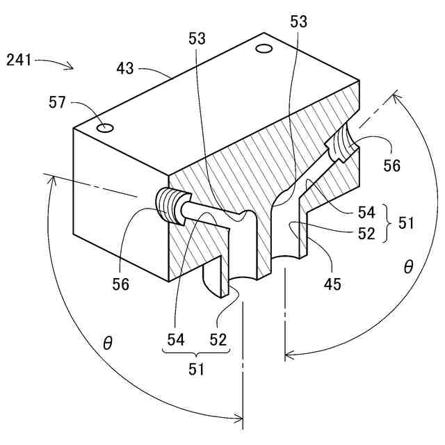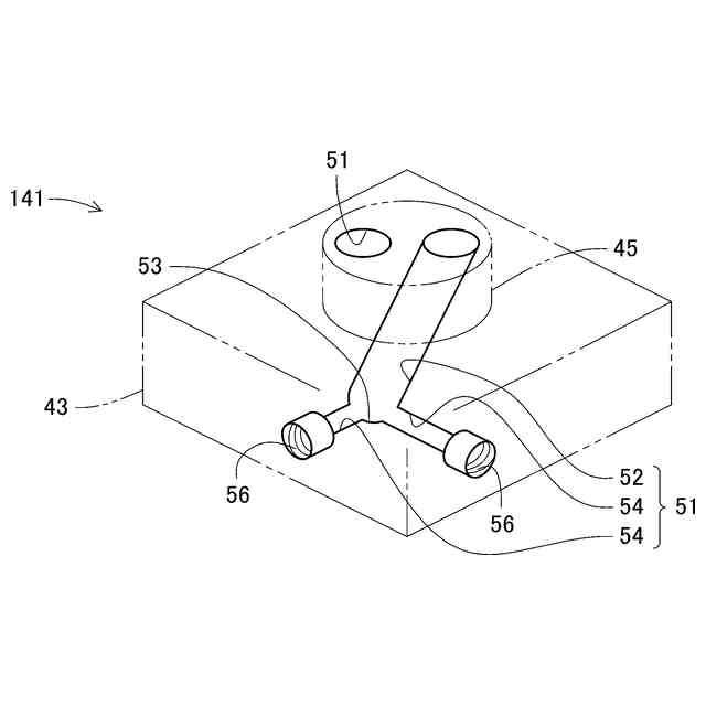 流路は、内方区間と外方区間で内径が異なっていても良い。この場合、内径の大きい方は、曲面で構成された底面を有し、内径の小さい方は、底面に開口していても良い。底面を構成する曲面は、半球形のほか、放物線断面などであっても良い。