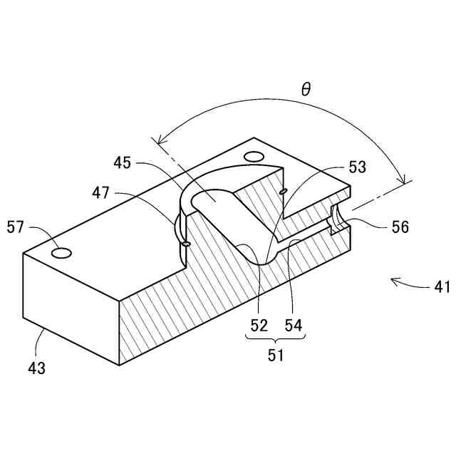 流路において、内方区間と外方区間のいずれか一方は、曲面で構成された底面を有し、内方区間と外方区間において残る一方は、底面に開口していても良い。底面を構成する曲面は、半球形のほか、放物線断面などであっても良い。