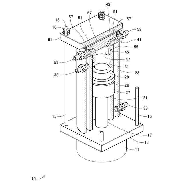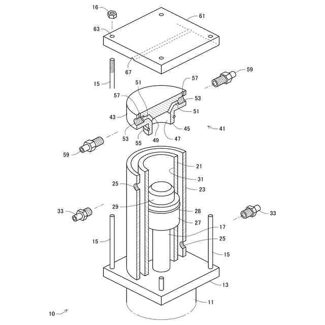 特許文献1のように、ブロックの内部に流体の流路を形成することで、流体との接触によってブロックの劣化が促進される恐れがある。特に流体が水素の場合、水素脆化を考慮する必要がある。水素脆化に対応するため、ブロックの素材については、SUH660などの耐熱鋼の使用が適している。このような耐熱鋼は高価であるほか、加工が困難であり、圧縮機のコストアップの要因になる。