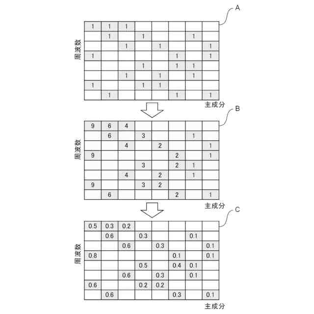 多次元の時系列データそれぞれに基づいて、各時系列データの各時刻における異なる複数種類の周波数特性を表す複数種類の多次元の第1画像を生成し、