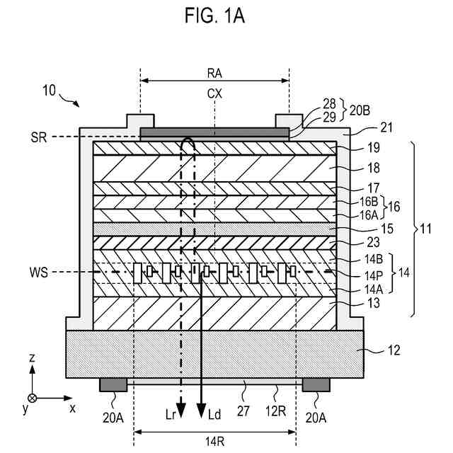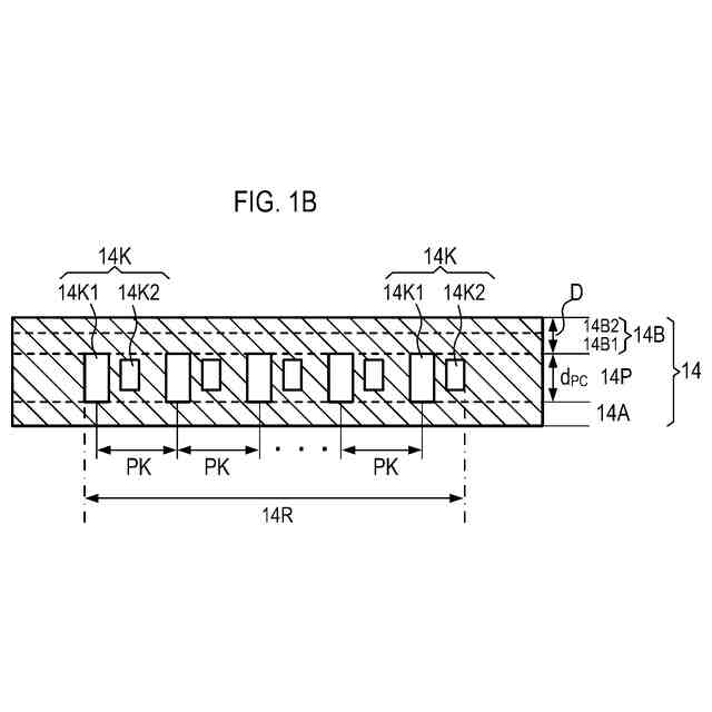 第1の実施形態のPCSEL素子の構造の一例を模式的に示す断面図である。