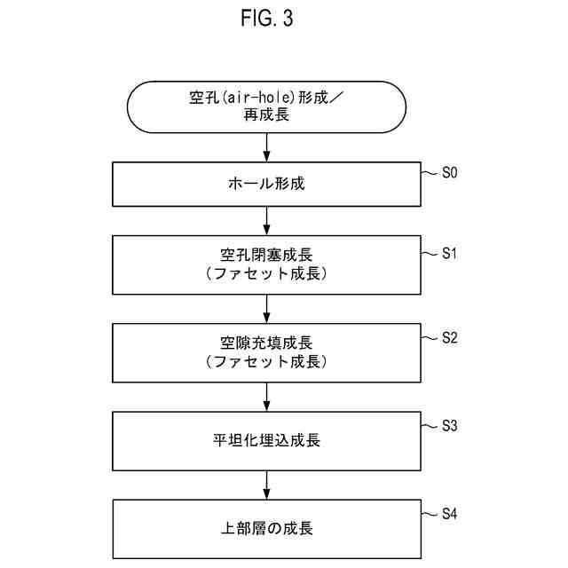 しかしながら、本願の発明者は、ファセット成長により空孔を閉塞した後、マストランスポートによって空孔を埋め込んだ場合に、埋込層内に微細な空隙が残り、結晶転位が発生すること、また、当該結晶転位に起因して活性層に突起等が生じ、素子特性の劣化の原因になるとの知見を得た。