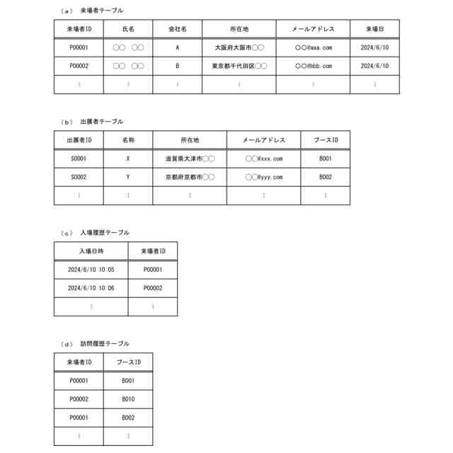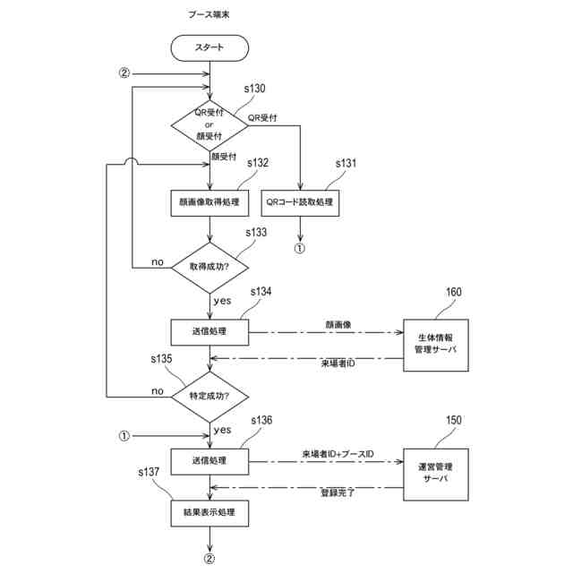 また、上記生体情報システムにおいて、前記施設は、展示会が開催される会場であり、前記設備は、前記会場内に設けられたブースであり、前記来場者の前記設備における行動は、当該来場者の前記ブースへの訪問であることを特徴とする。