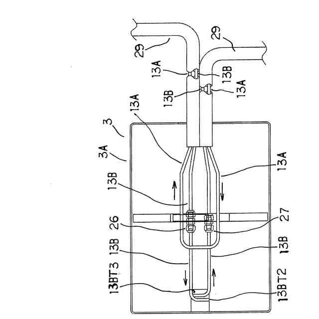 また第2の発明は、第1の発明において、前記冷媒循環路を構成するフレキシブルな往き配管及び戻り配管を中空円筒形状を呈した結露防止用の可撓性の被覆筒体で被覆したことを特徴とする。