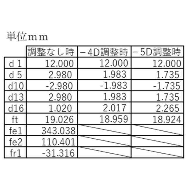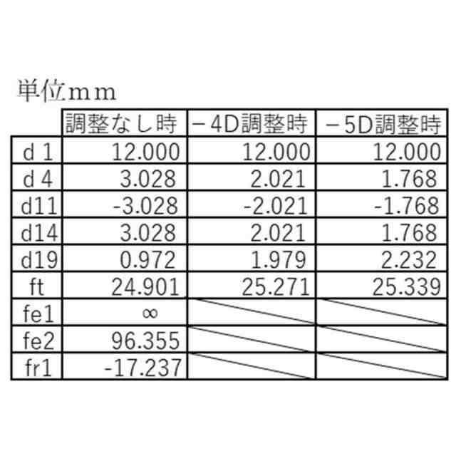 前記第1視度は0ディオプタ、前記第2視度は-4ディオプタであり、0ディオプタでのft[D1]をft[0D]、-4ディオプタでのft[D2]をft[-4D]とするとき、