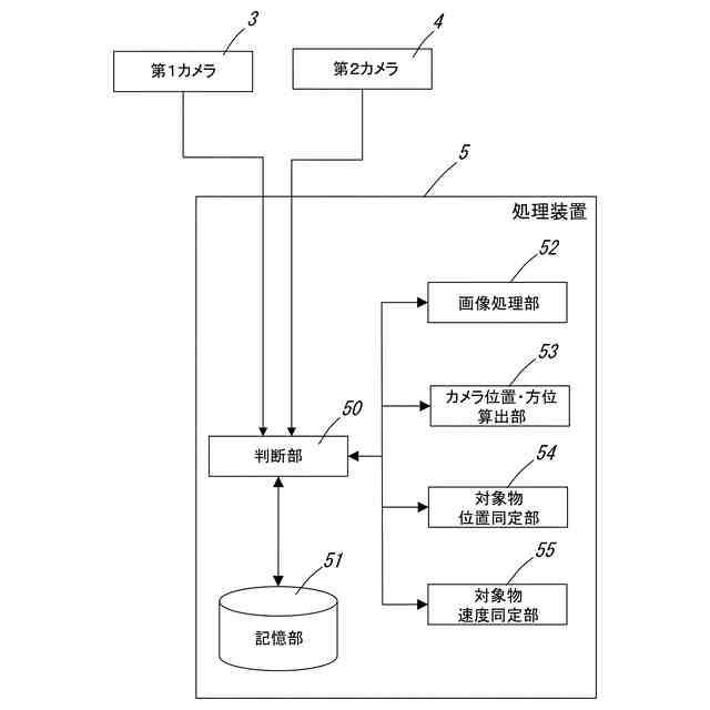 請求項2に係る位置同定システムは、上記請求項1に記載の位置同定システムにおいて、前記位置同定手段(対象物位置同定部54)にて同定された前記対象物(2)の位置に基づいて、該対象物(2)の速度を同定する速度同定手段(対象物速度同定部55)を、さらに有してなることを特徴としている。