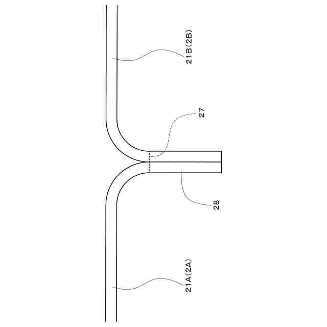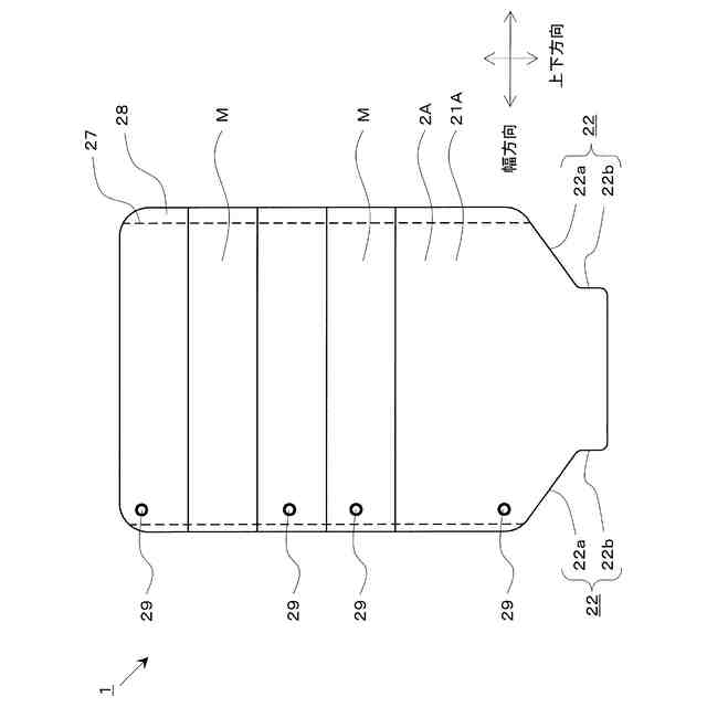 相対させた前記各裏面が離間不能に固定される縦長状の固定部が形成されると共に、該固定部から幅方向一方側へ延出する前記基材からなる縦長形状の拡張部と、他方側へ延出する第1のシート部と第2のシート部とが形成されており、