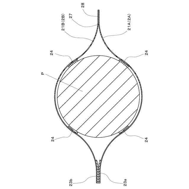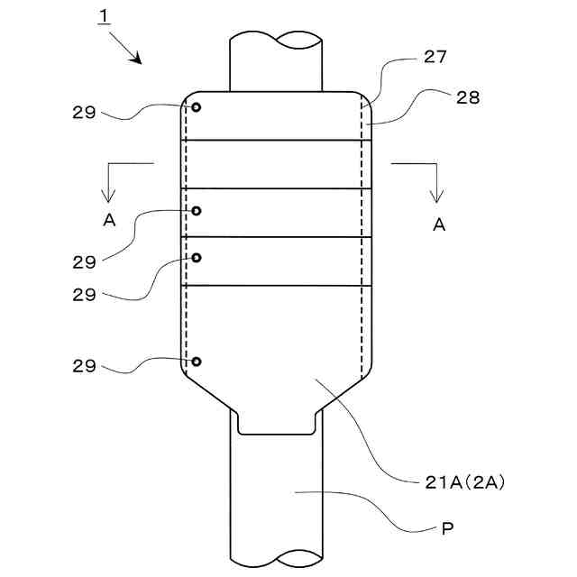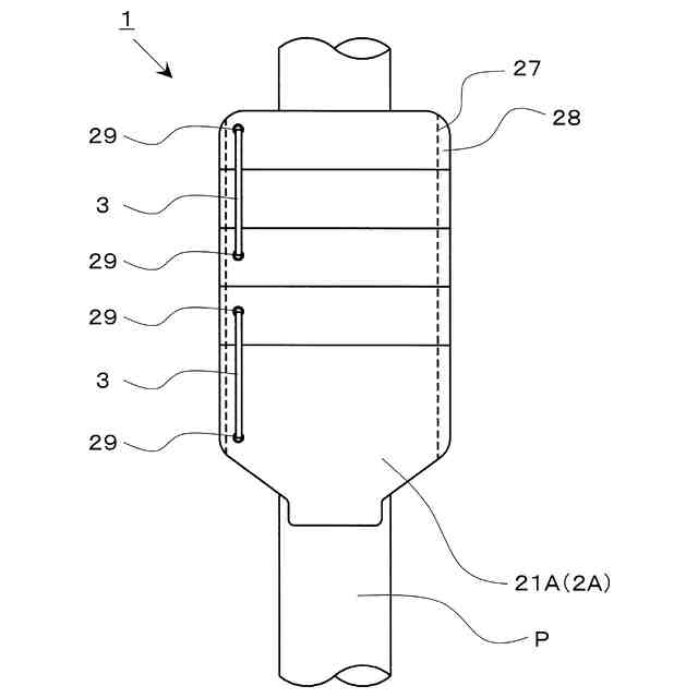 また、特許文献2に示される視線誘導標は、シート部材を第1シート部材と第2シート部材から構成し、第1シート部材と前記第2シート部材の少なくとも左右方向の一側を接合して、第1シート部材と第2シート部材をポール本体の側面に巻き付け、結束バンドからなる固定具で締め付けてポールに取り付ける構成が示されています。しかしながら特許文献2の視線誘導標は、固定具よりも外側のシート部材の端部の変形による視認性への影響が懸念される。