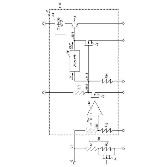 プログラムと協働し、前記第2状態において、前記第1電圧値が第2閾値より大きくなったときに、前記設定回路に、前記入力抵抗を前記第2値から前記第1値に設定させるプロセッサと、