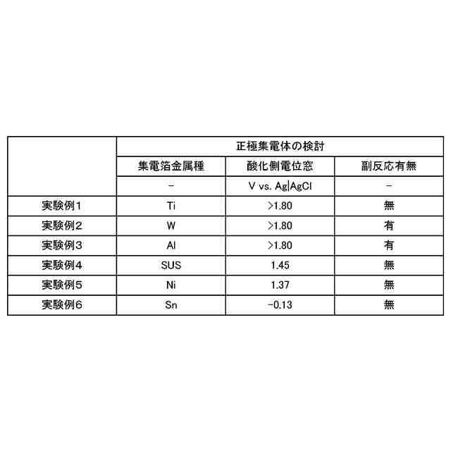 排出量の抑制が期待される。このような観点で水溶液系カリウムイオン二次電池は魅力的な電池系である。しかしながら、水溶液系カリウムイオン二次電池に関する報告例は多くなく、活物質、電解液に着目した研究例が主である。活物質や電解液の検討の際に、電位窓の広いチタンを集電体に用いたり(非特許文献1)、電気化学的に安定な金を集電体に用いたり(非特許文献2)した例はあるものの、集電体に着目した研究例は報告されていない。非水系カリウムイオン二次電池において、集電体としてアルミニウムを使用した例はあるが(特許文献1)、水溶液系電解液との組合せは検討されていない。