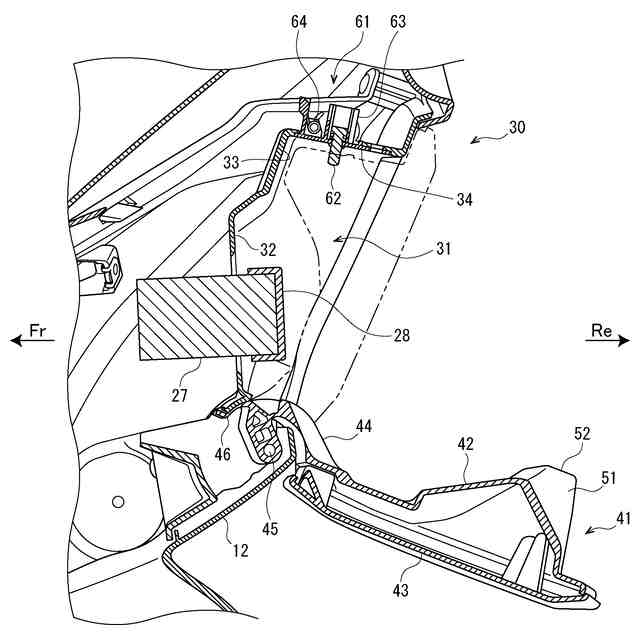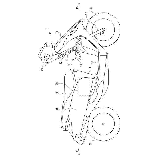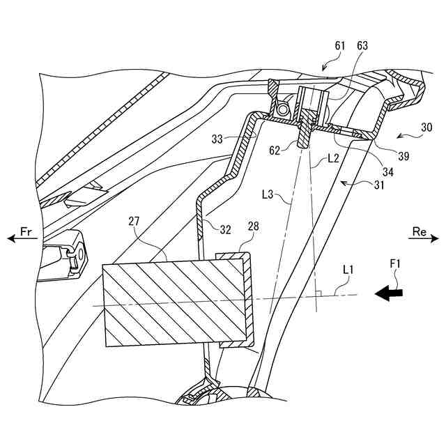 以下、添付図面を参照して、実施例の鞍乗型車両について説明する。図1は本実施例の鞍乗型車両の側面図である。また、以下の図では、矢印Frは車両前方、矢印Reは車両後方、矢印Lは車両左方、矢印Rは車両右方をそれぞれ示している。