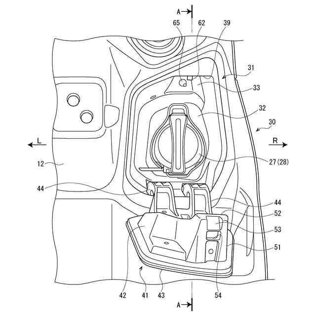 しかしながら、特許文献1に記載のリッド構造では、フューエルトレイの開口縁からロック機構の突起部が内向きに突き出しているため、給油キャップの着脱作業時に突起部が手に触れて邪魔になる。突起部が触れないようにするためには、給油口と突起部のクリアランスを広く確保する必要がある。このような不具合は、充電口や給電口等の接続口への電気コネクタの接続作業時にも生じる。