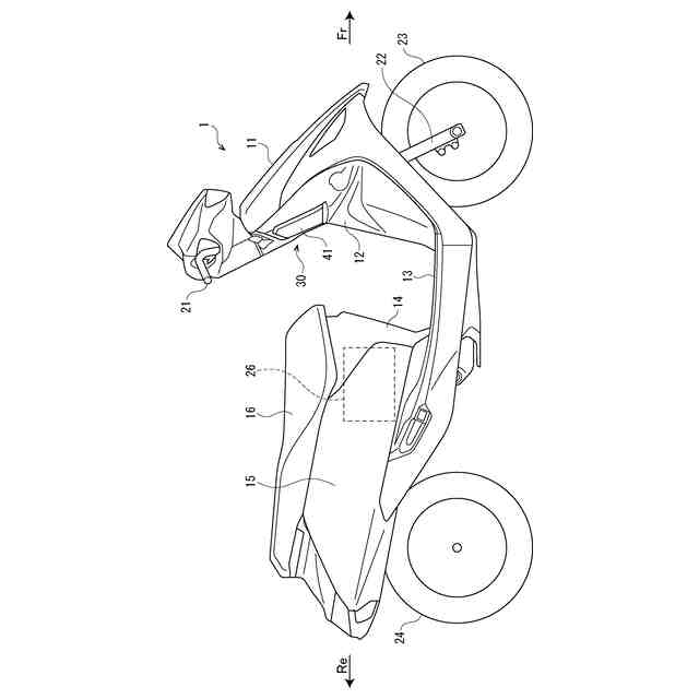 以下、添付図面を参照して、実施例の鞍乗型車両について説明する。図1は本実施例の鞍乗型車両の側面図である。また、以下の図では、矢印Frは車両前方、矢印Reは車両後方、矢印Lは車両左方、矢印Rは車両右方をそれぞれ示している。