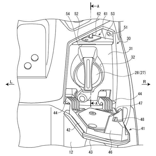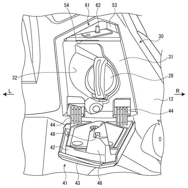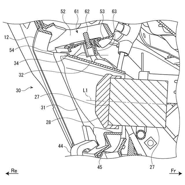 特許文献1に記載のリッド構造では、給油キャップの着脱作業時に突起部に手が触れないようにフューエルトレイに十分なスペースを確保する必要がある。しかしながら、フューエルトレイにスペースが確保されていても、フューエルトレイの開口縁から突き出したロック機構の突起部に手が触れて作業性が悪化する場合がある。このような不具合は、充電口や給電口等の接続口への電気コネクタの接続作業時にも生じる。