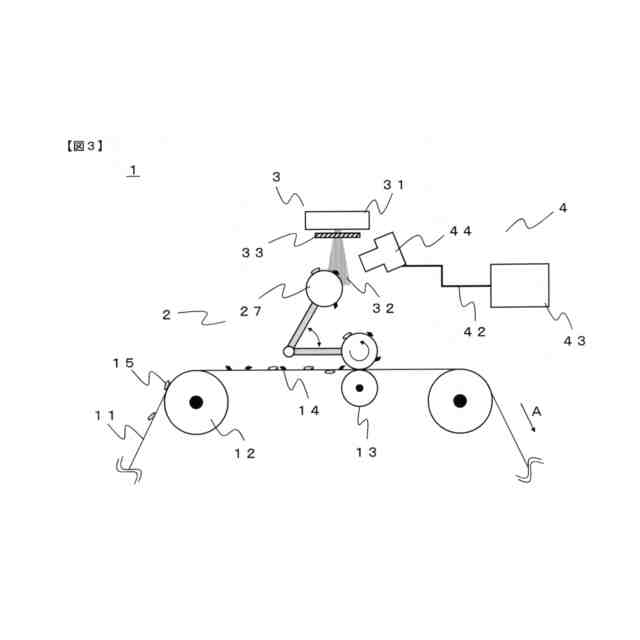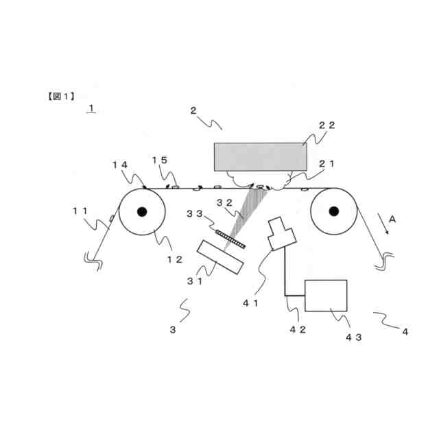 [1]上記課題を解決する本発明は、搬送中のウェブにおいて、特定異物の付着を検査する異物検査装置であって、