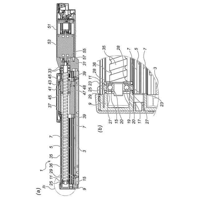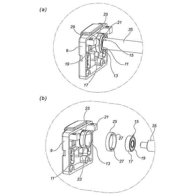 図1(b)に示すように上記軸受15には外輪17と上記外輪17の内側に回転可能に収容された内輪19と上記外輪17と上記内輪19との間に転動可能に設置された複数の転動体としての鋼球20がある。