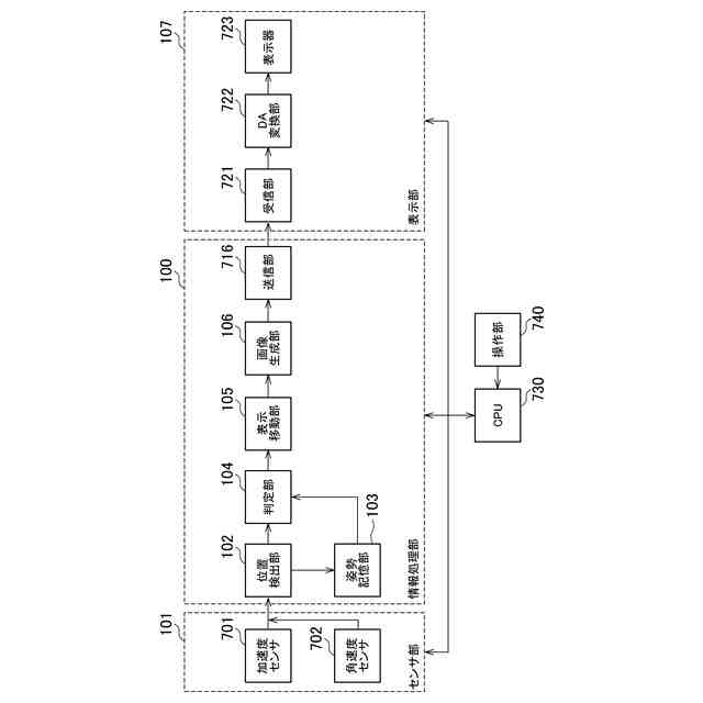 近年、ユーザが頭部に装着するヘッドマウント型や眼鏡のように耳に掛けて装着するグラス型などのような、多様な形態の表示装置が登場している。これらの表示装置は、それ以外の一般的な表示装置とは異なり、視界全体あるいは視界の大部分を占める画像をユーザに提供することができる。また、これらの表示装置は、角速度センサ、加速度センサ、測距センサなどの各種センサを搭載しており、それら各種センサの情報からユーザの頭部の動きを検知し、その頭部の位置や向きに連動して表示画像を連続的に変化させる機能を備えているものが多い。このため、ユーザは、表示装置に表示されている画像があたかも現実世界に存在しているかのような高い没入感を得ることができる。