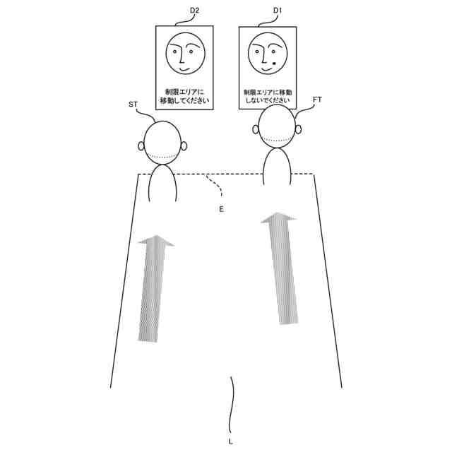 前記制御手段は、移動方向とは異なる方向に並ぶ二人の対象が移動可能な幅を有する通路から前記所定領域への対象の進入を制御し、