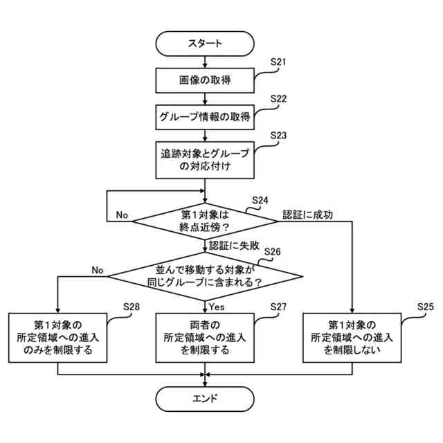 【解決手段】情報処理装置1は、第1グループに含まれる第1対象と第2対象とを追跡する追跡部と、第1対象の認証が失敗した場合、第1対象及び第2対象の所定領域への進入を制限するように制御する制御部と、を備える。