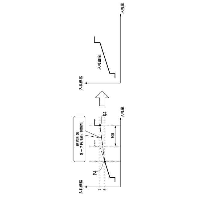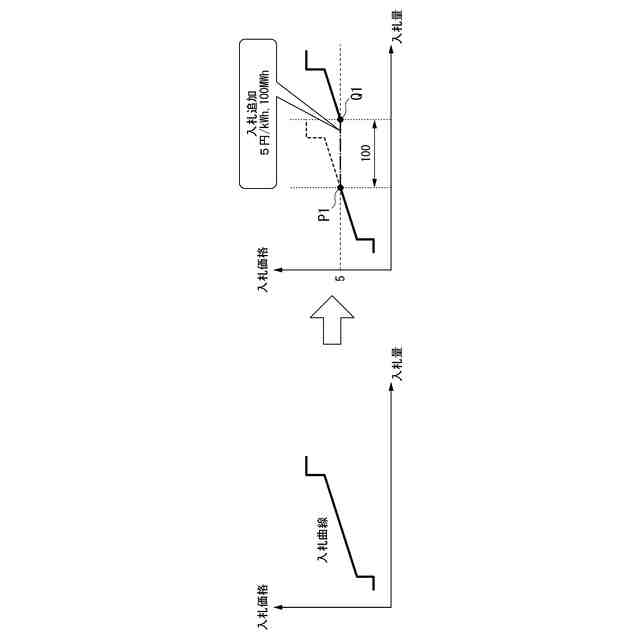 ところで、入札曲線は、入札された電力量である入札量を、入札価格が安い順または高い順に積み上げることで形成される。このため、例えば特定の発電機が点検作業や事故等で停止している場合には、当該発電機に対応する売入札が欠落することで、売入札曲線の形状が変化する。あるいは、同状況において、当該発電機によって賄われていた自家消費分を市場から調達するために、自家消費分に対応する買入札が発生することで、買入札曲線の形状が変化する。従って、将来の入札曲線を予測する際には、過去の入札曲線の実績を参照するだけでは不十分であり、発電機の運転状態を反映した入札曲線の補正を行うことが必要となる。特許文献1には、太陽光発電などの変動電源による発電量の変動を考慮して入札曲線を補正する技術が開示されている。