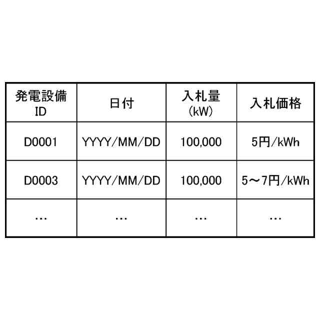前記入札情報は、入札量に対して、一定の幅を有する入札価格が設定された情報であり、