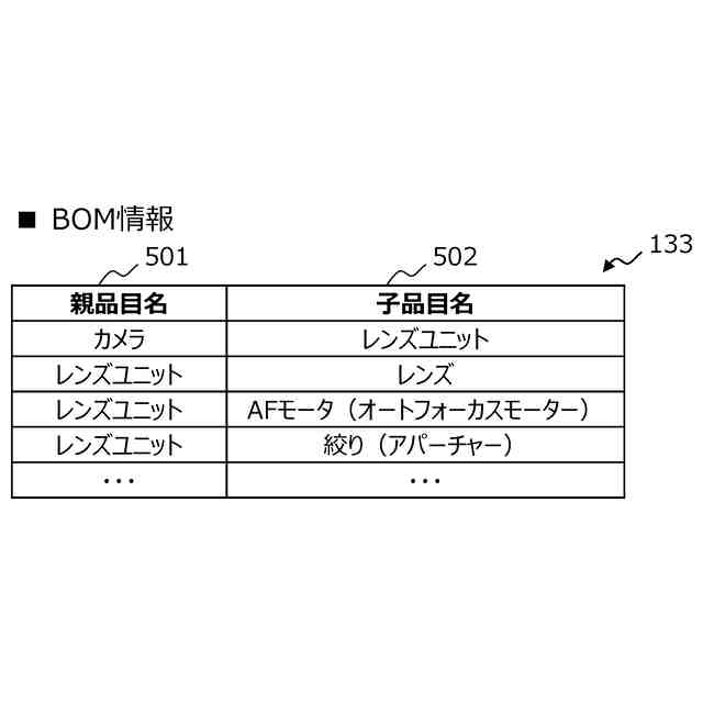 本実施形態に係るBOM情報に基づくBOM情報イメージの一例を示す説明図である。