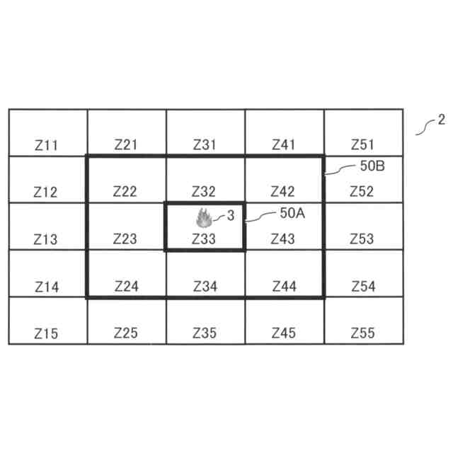 ここで、自動車運搬船における火災監視領域に相当する「自動車の積載スペース」は、窓がなく、全消灯すればスペース全体を真っ暗な状態とすることができる特殊な環境を有している。このような特殊な環境は、自動車運搬船に限らず、貨物運搬船等のその他運搬船、普段は非常灯が点灯しているだけの薄暗い場所(危険物倉庫等)、トンネル内などの火災監視領域に共通している。
