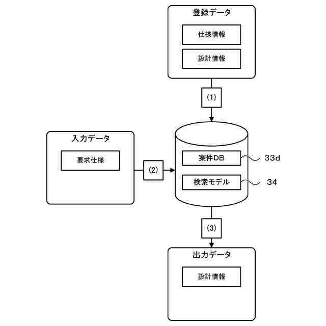 前記データから前記仕様情報が前記要求仕様により近い前記モジュールを検索し、検索した前記モジュールに対応付けられた前記設計情報を出力する検索部と、