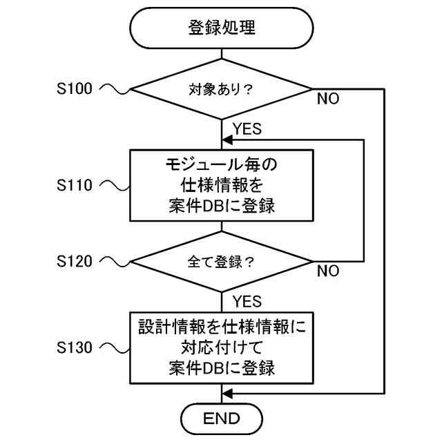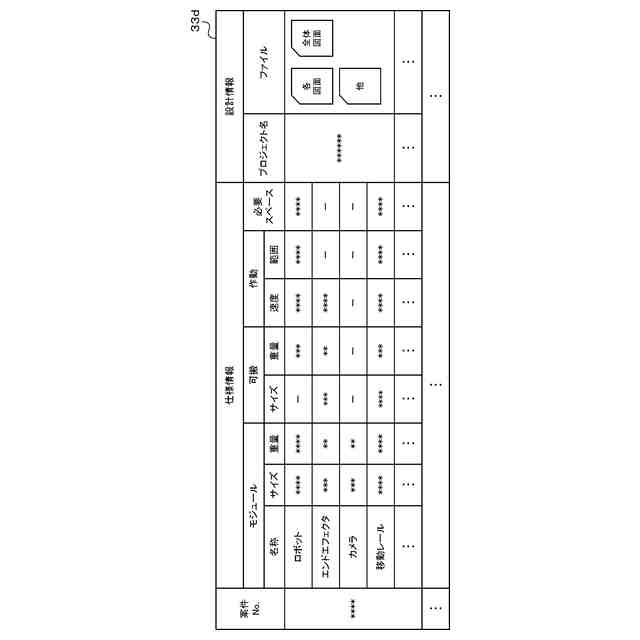 前記作業システムを構成し所定作業を行うモジュールのサイズおよび作業能力のうち少なくともいずれかを含む仕様情報と、前記モジュールの図面を含む設計情報とを対応付けたデータを蓄積して記憶する記憶部と、