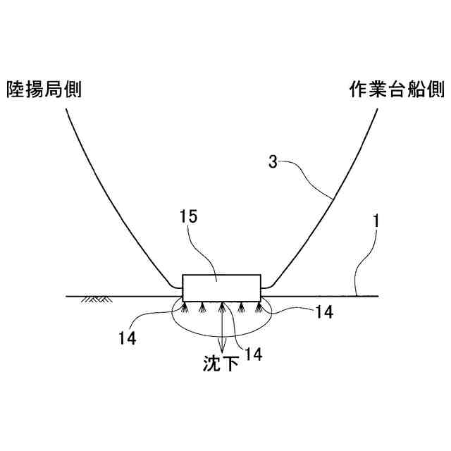 しかしながら、この種の水中ケーブルは、水底に露出した状態で敷設されている場合、波浪等の自然外力、船舶のアンカー、底引き網等によって損傷するおそれがあるため、特に、大陸棚までの浅海部分では水底地盤内に埋設することが望ましい。