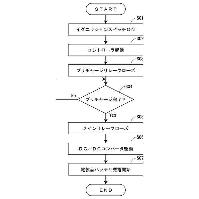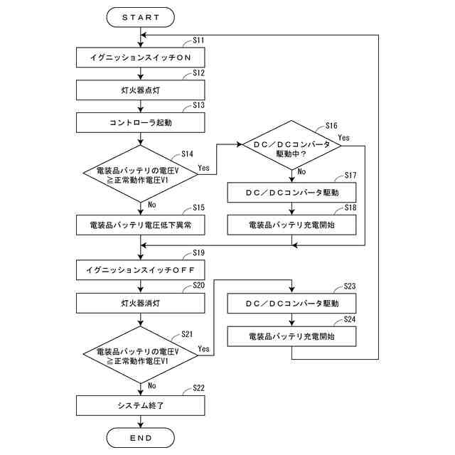 一般的な電装品バッテリの充電動作のフローチャートである。