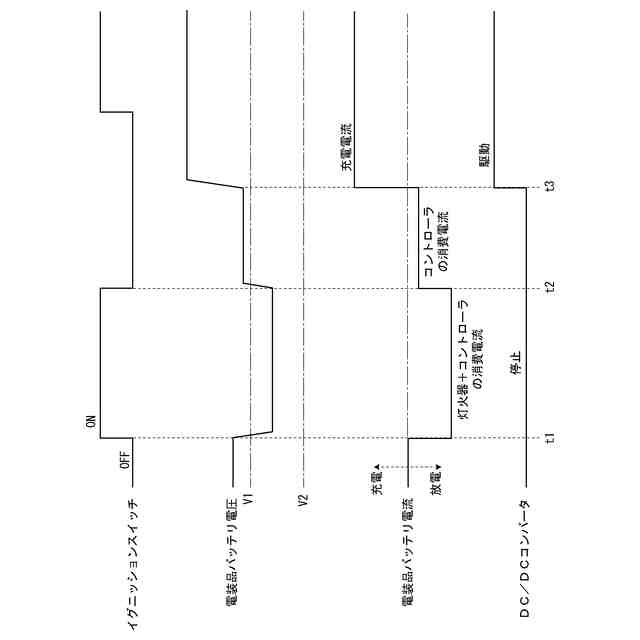 本実施例の電装品バッテリの充電動作のタイムチャートである。