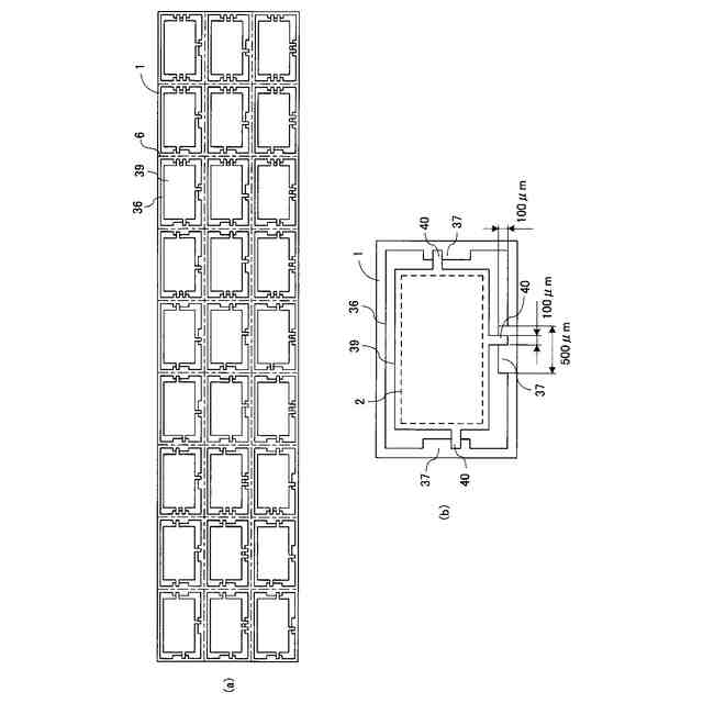 また、本発明の有機発光素子は、1枚の基板を用いて複数個を同時に作製する。即ち、有機発光素子の発光領域を複数形成し、発光領域毎に基板を切断して個々の有機発光素子が得られる。以下、切断前の複数個の有機発光素子が連続した形態をチップと呼ぶ。チップ内において、個々の有機発光素子の識別部は互いに異なる。よって、係る識別部によって、チップ切断後においても、チップ切断前の位置を特定することができる。