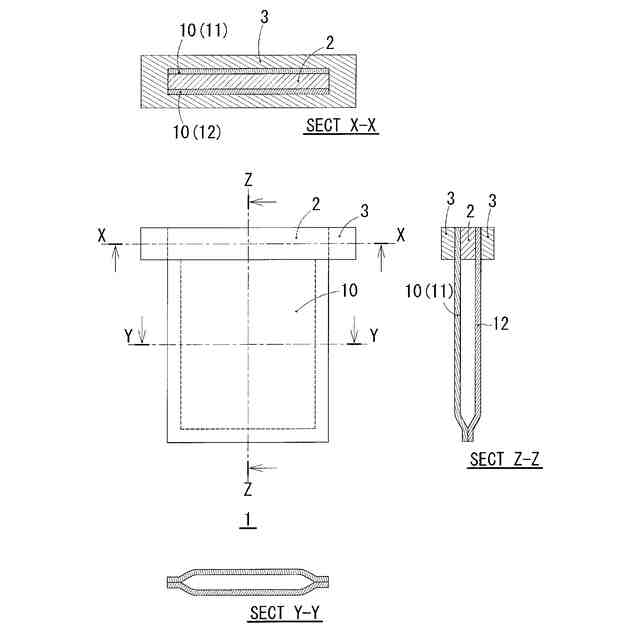 【解決手段】 二次電池の加圧時に用いる二次電池用加圧袋であって、シート材を重ね合わせた袋本体部の1辺に、シート材を固定するためのシート支持部材を袋本体部の1つの周縁部の全長に渡り内接することで、シート材の表側と裏側から、カバー部材を設ける際に、シート材の変形を抑制し、袋本体部とカバー部材の接合強度を確保した二次電池用加圧袋を得る。