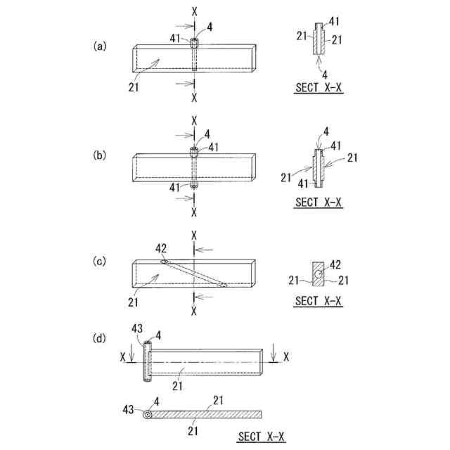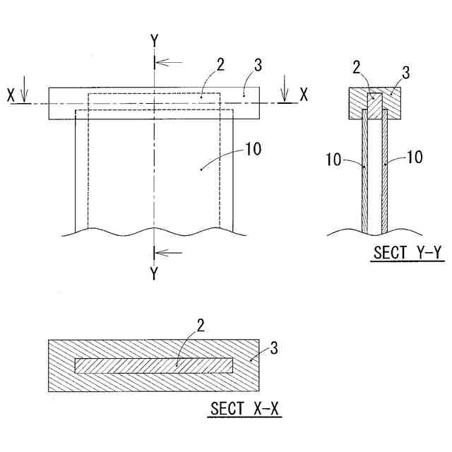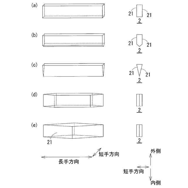 その長手方向の端部の厚さが、中央部の厚さに比較して薄くなっていることを特徴とする、