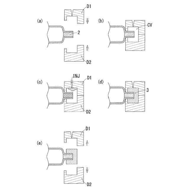 インサート成型若しくはオーバーモールド成型においては、カバー部材を射出成型する金型が準備され、加圧袋の端部など、カバー部材が取り付けられるべき部分を、当該金型内に配置し、かかる状態において樹脂の射出成型が行われる。本工程は、インサート成型若しくはオーバーモールド成型と呼ばれている。かかる工程により、当該金型内にカバー部材が成型され、かつ、当該金型内に配置された加圧袋の一部(例えば端部)と、カバー部材が接合一体化される。