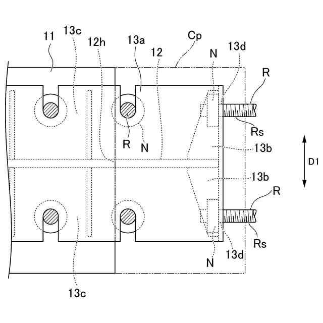穴付きモジュール同士の接続部の正面視の断面図である。
