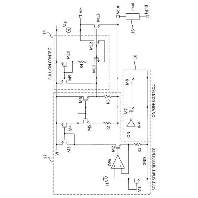 ここで、チャージポンプ回路で生成される電力は限られており、スイッチデバイスの制御は低消費電力であることが望ましい。また、ハイサイドロードスイッチは、オン時のサージ電流を防ぐためにソフトスタート機能が必要な場合がある。さらに、ハイサイドロードスイッチはメカニカル・リレーに代わるものであり、容量性負荷や、誘導性負荷や、大電流の負荷など、さまざまな条件の負荷に対応しなければならない。