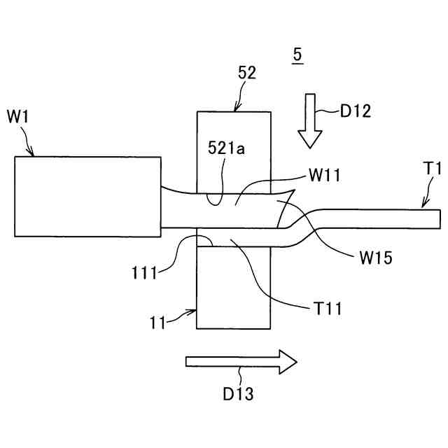 ここで、上述の抵抗溶接装置では、抵抗溶接の際に、電極からの加圧や、素線部分自身の塑性変形によって接続部分上で素線部分が延出方向に伸びる場合がある。このような素線部分の伸びは、過剰となった場合には端子付き電線における電線と端子部品との接合品質を低下させるおそれがあり、望ましいものではない。