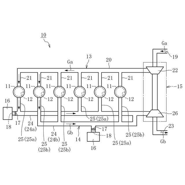 例えばディーゼルエンジンなどの内燃機関には、各シリンダの排気バルブから排出された排気ガスを合流させて排気口から外部に排出するための排気ガス流路が設けられている。また、この排気ガス流路の排気口よりも上流側には過給機が設けられており、過給機のタービンが排気ガスの流れを受けて回転することで、タービンと同軸に連結されかつ外気の取り込み口から吸気バルブに至る給気流路上に配設されたコンプレッサを作動させる。これにより、取り込んだ空気が圧縮されて燃焼室に供給されるようになっている(例えば、特許文献1を参照)。