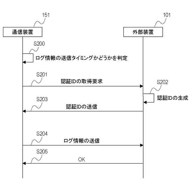通信装置と外部装置(サーバ)間でログ情報を送信する際の通信例を示す図である。